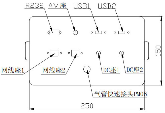 接插件安裝板上標(biāo)配安裝: RS232 接頭1個(gè)、AV座1個(gè)、USB接頭2個(gè)、網(wǎng)線(xiàn)座2個(gè)、DC座2個(gè)、氣管快速接頭PM06接頭1個(gè)