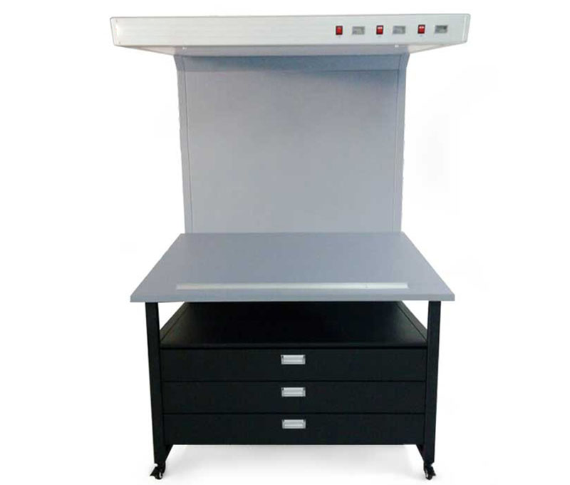CC120看樣臺適合于環(huán)境要求高的印刷,包裝車間或打樣中心,美觀大方,膠印,柔印,凹印等印刷廠都能適用,可以直接看反射稿件。