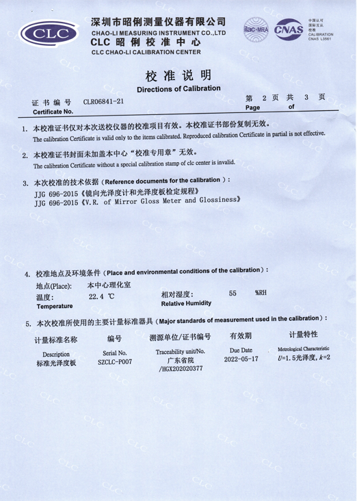 HRC華銳昌MG60系列光澤度儀校準(zhǔn)證書