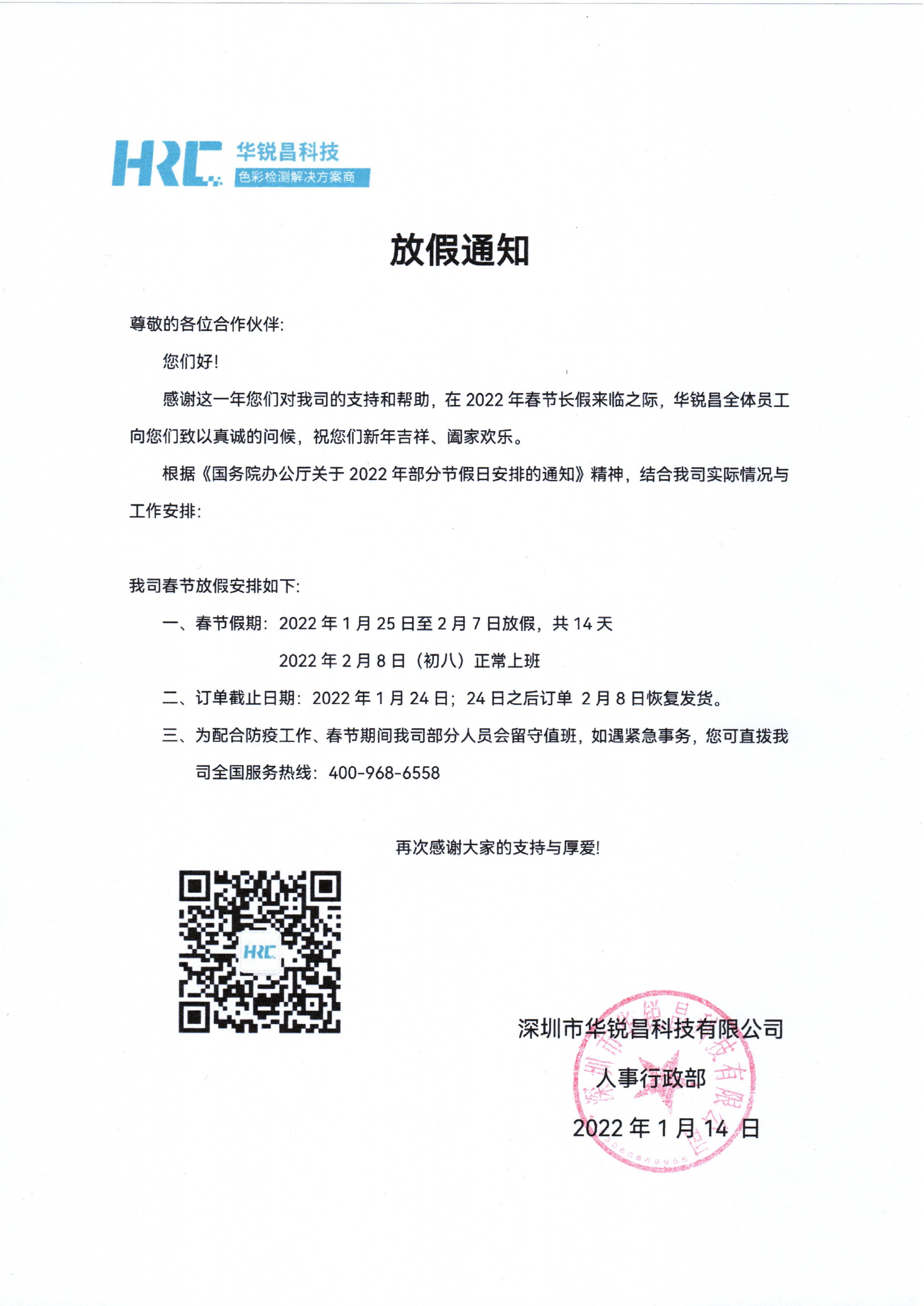 感謝這一年您們對(duì)我司的支持和幫助,在2022年春節(jié)長(zhǎng)假來(lái)臨之際,華銳昌全體員工向您們致以真誠(chéng)的問(wèn)候,祝您們新年吉祥、闔家歡樂(lè)。