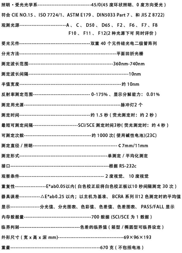 CM-2500d光學(xué)設(shè)計的目標(biāo)是實現(xiàn)實際測量再現(xiàn)性及穩(wěn)定性,另外,該設(shè)計還力求減少多次測量色彩時的重復(fù)測量誤差并提高精確度,與傳統(tǒng)系統(tǒng)相比,混合箱(內(nèi)置半球體)和照明裂隙燈所營造的環(huán)形光源可實現(xiàn)更加均勻的照明和改良的45/0光學(xué)系統(tǒng),附加準(zhǔn)直鏡可提供高度平行的照明/受光光線(實現(xiàn)區(qū)域照明均勻),較大的樣品接觸面積可獲得緊密和穩(wěn)定的接觸確保更輕松地測量汽車零部件或軟質(zhì)物品等曲面樣品,與以往的45/0光學(xué)系統(tǒng)分光測色計相比,這種精密光學(xué)系統(tǒng)顯著改善了測量任意表面的重復(fù)性,消除了測量方向限制,并減少了測量位置、儀器轉(zhuǎn)動、樣品位置、樣品傾斜等因素對測量結(jié)果造成的影響,從而提高了測量穩(wěn)定度。