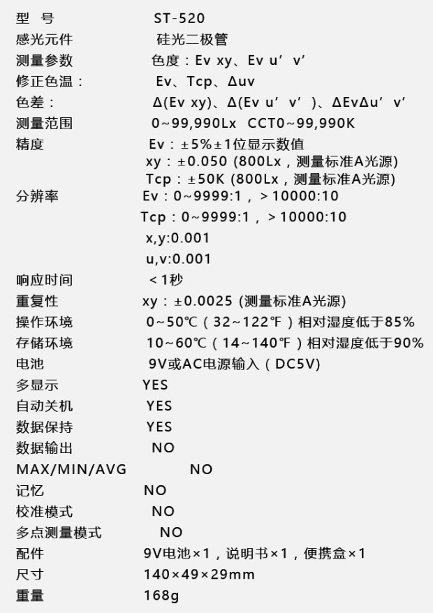 ST-520色溫照度計簡單介紹: