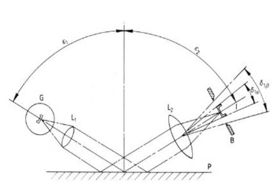 光澤度計的測量原理 ,光源G發(fā)射一束光經(jīng)過透鏡L1到達(dá)被測面P,被測面P將光反射到透鏡L2,透鏡L2將光束會聚到位于光欄B處的光電池,光電池進(jìn)行光電轉(zhuǎn)換后將電信號送往處理電路進(jìn)行處理,然后儀器顯示測量結(jié)果,光澤度的單位,根據(jù)JIS的規(guī)定,光澤度的單位為%或者數(shù)字即可,此外,記錄時,原則上應(yīng)明確測定角度測定儀器廠家名型號。