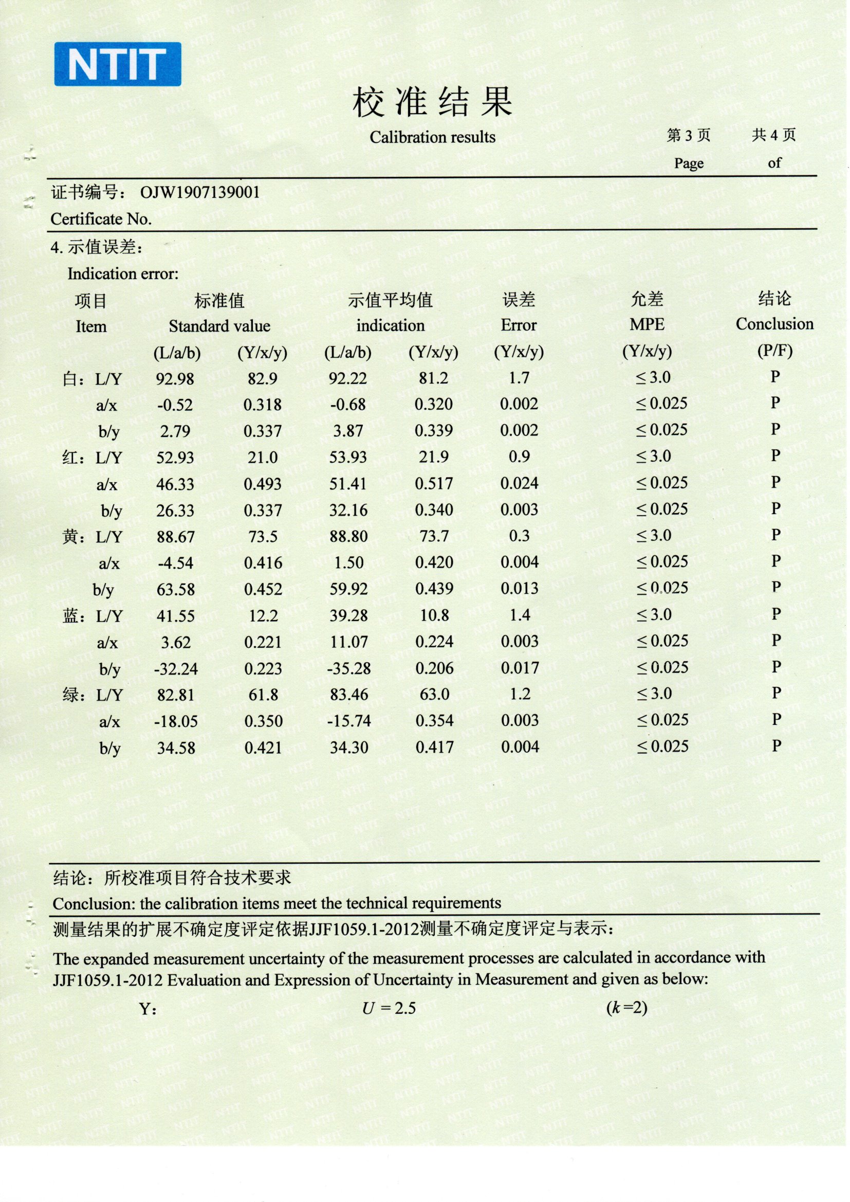 色差儀國家計量測試中心國檢檢測報告SCM CNAS NTIT校準證書。